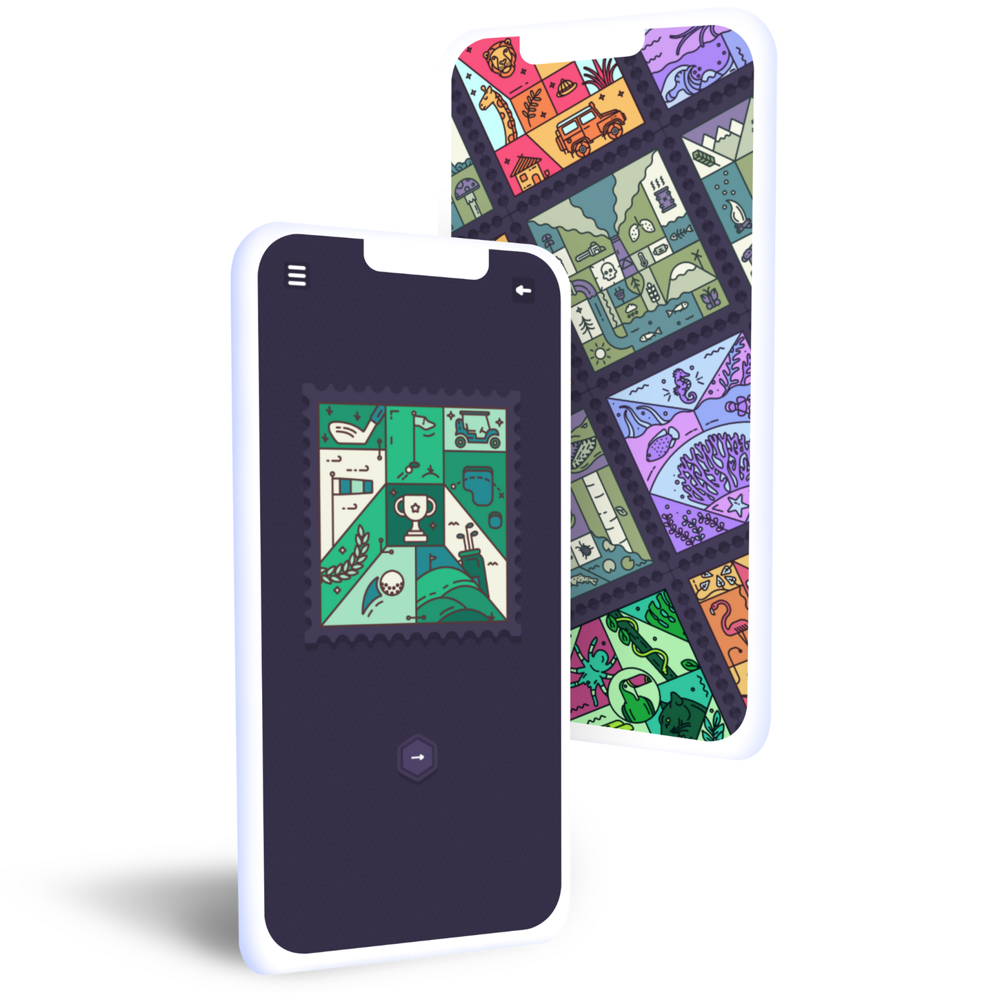 Enjoy stylish stamp shaped illustrations. Switch between dark mode or light mode and unlock wallpapers for your devices.
